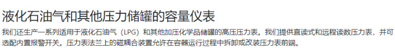 Bayham 液化石油气和其他压力储罐的容量仪表系列